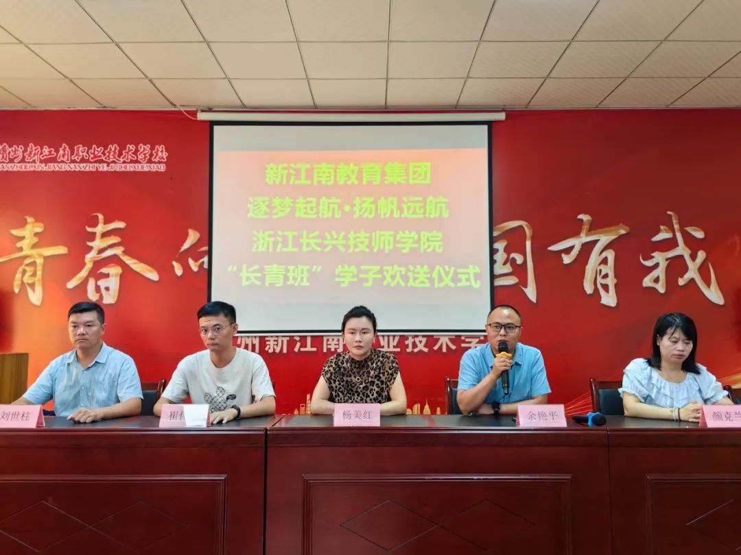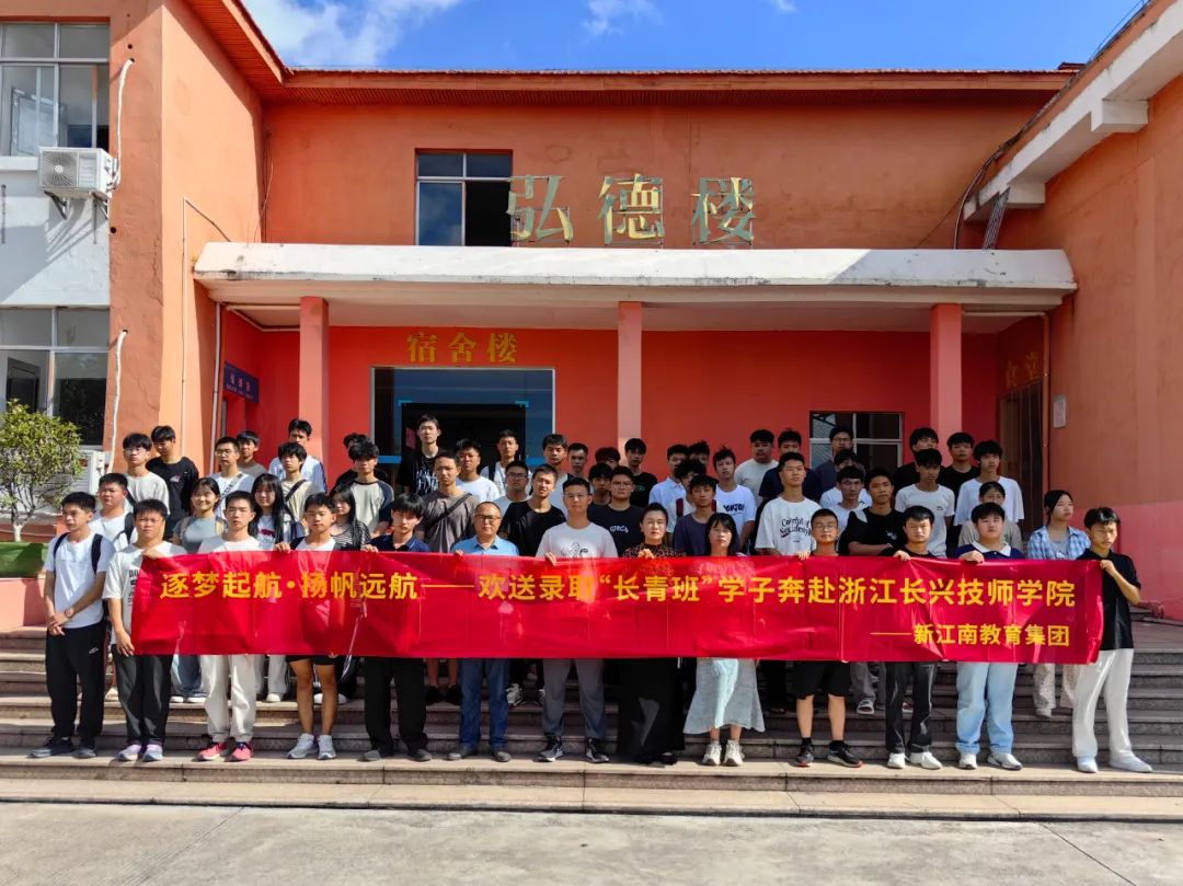 出席此次仪式的有新江南教育集团副董事长杨美红、新江南职业培训学校执行校长余艳平、长兴技师学院崔伟康主任及新江南赣州校区相关领导。会议由余艳平主持,现场气氛庄重而激昂。 在仪式上,余艳平校长对“长青班”学子们提出了殷切的希望。并强调在校期间要遵守各项规章制度,弘扬良好的校园风尚。同时,也对即将开启新阶段学习的学子们表达了美好的祝愿,期望他们在未来的学习生活中不断奋进,成长为有用之才。 长兴技师学院崔伟康主任也发表了热情洋溢的讲话,他勉励学子们保持初心,珍惜学习的时光,把握每一次成长的机会,以积极的态度迎接未来的挑战。 仪式最后,大家进行了合影留念,记录下这一难忘的时刻。随后,学子们精神饱满、意气风发地出发,奔赴下一站——浙江长兴技师学院,开启新的学习征程。 “逐梦起航,扬帆远航”,此次欢送仪式不仅彰显了新江南教育集团对学生成长的关怀,更激励着每一位“长青班”学子以饱满的热情迎接未来的精彩篇章。愿他们在未来的道路上,不忘初心,砥砺前行,勇敢逐梦,早日实现自己的梦想!