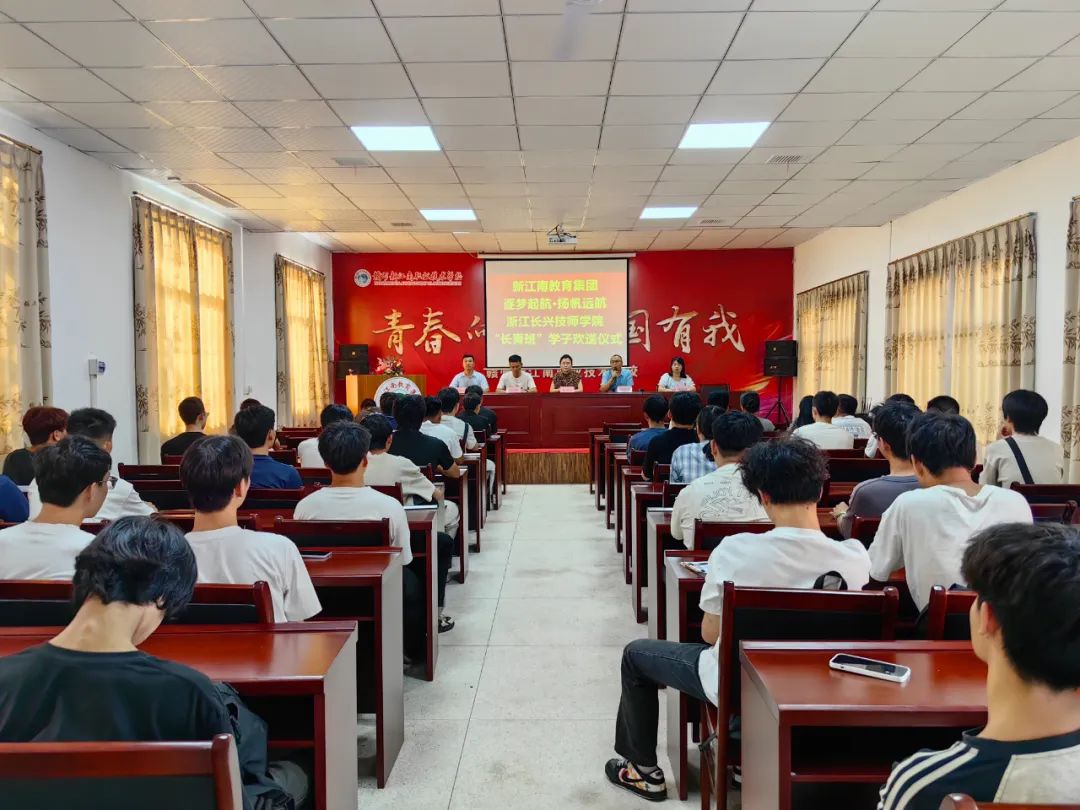 8月19日上午,新江南教育集团赣州校区小礼堂隆重举行了浙江长兴技师学院“长青班”学子欢送仪式。欢送仪式激励即将踏上新旅程的学子们,鼓励他们怀揣梦想,勇敢追求未来。