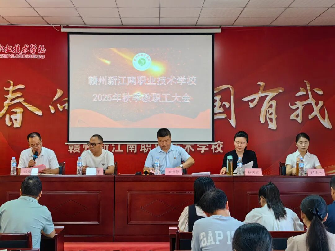 2025年8月29日上午,赣州新江南职业技术学校全体教职工齐聚报告厅,以饱满的精神状态迎来了秋季开学教职工培训大会,正式吹响了新学期的奋进号角。