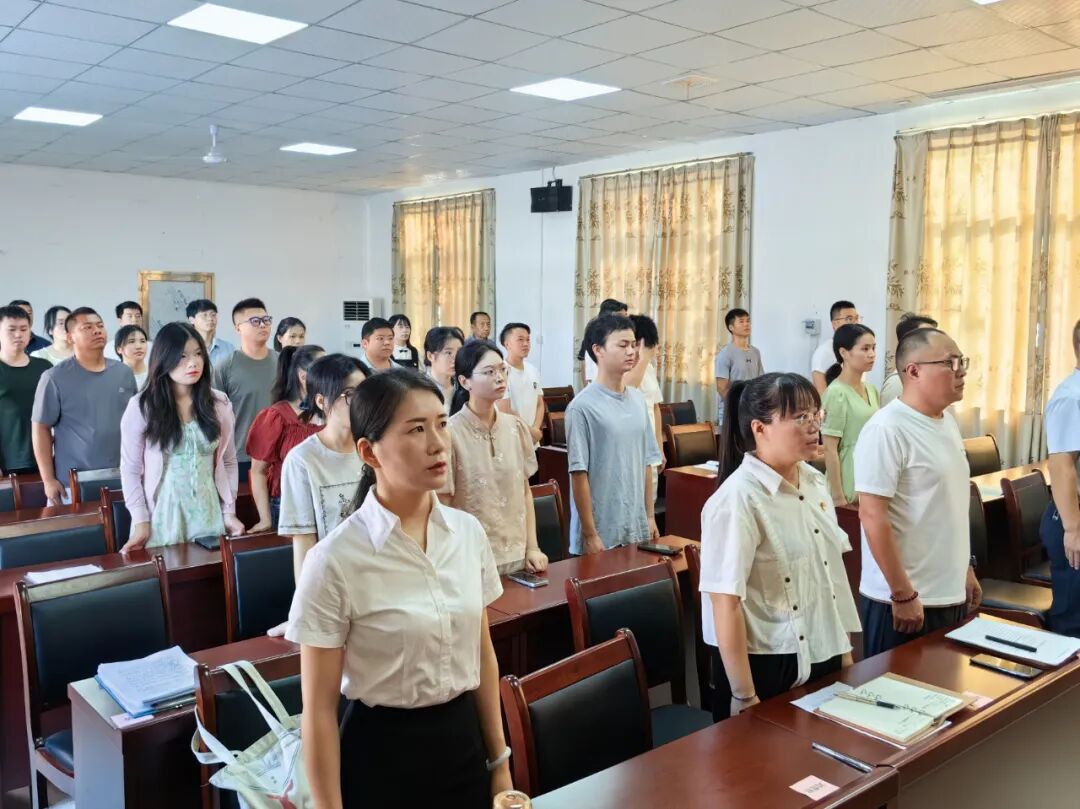 会议在庄严的国歌声中拉开帷幕 , 全体与会人员庄严肃立,激昂的旋律回荡在会场。 随后, 教师宣誓中冯李平副校长领誓,句句誓言铿锵有力,展现了全体教师投身教育事业的坚定决心 。