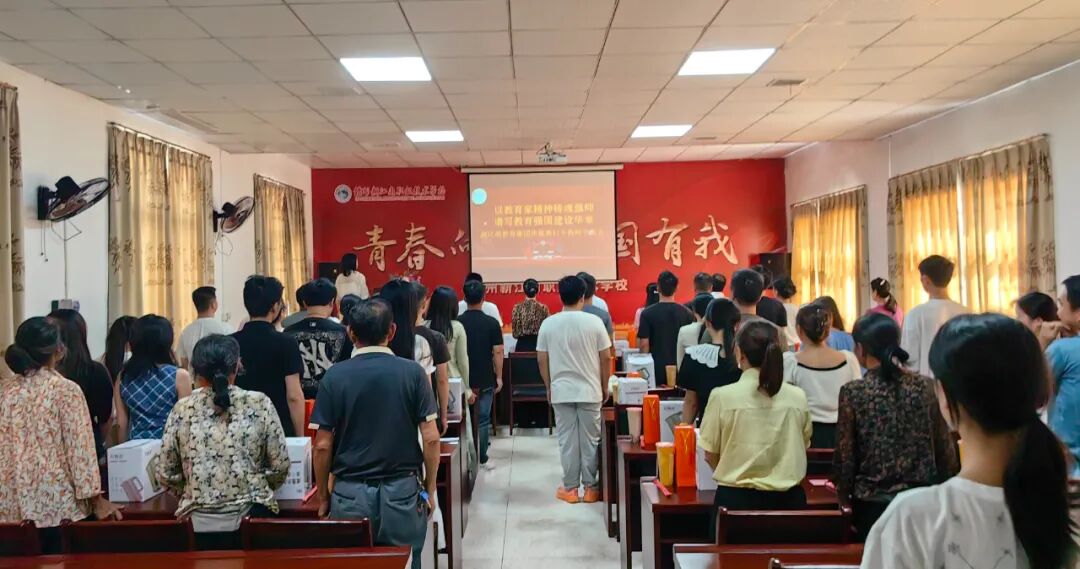 会议在庄严的氛围中拉开帷幕。全体师生肃立,奏唱国歌,激昂的旋律回荡会场,爱国之情与育人使命在每个人心中激荡。