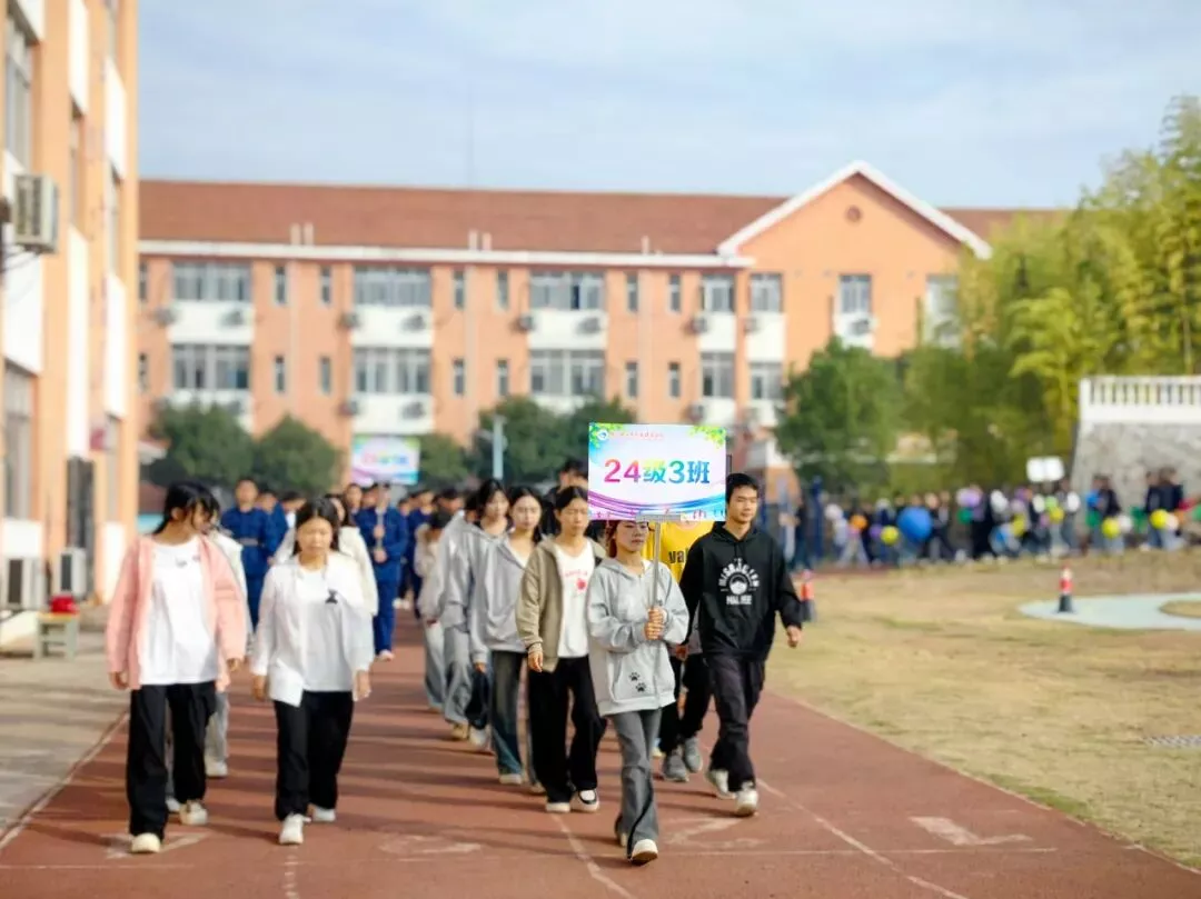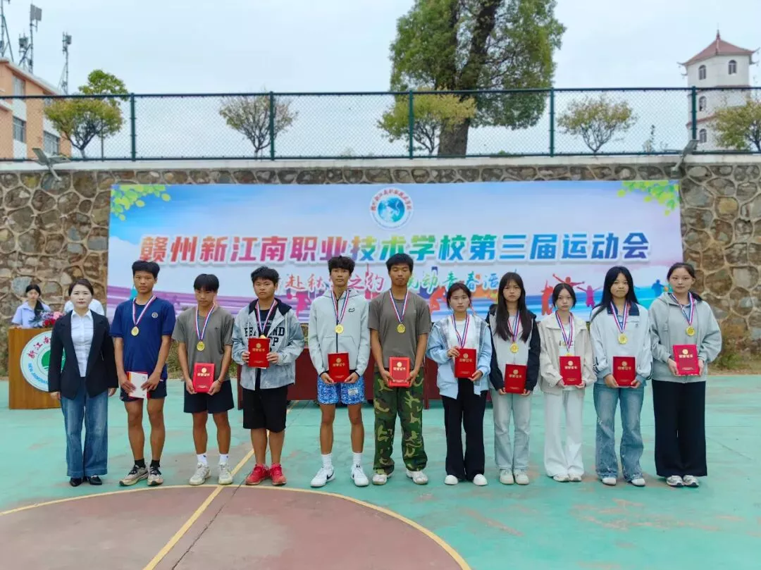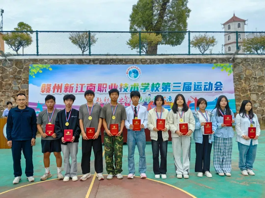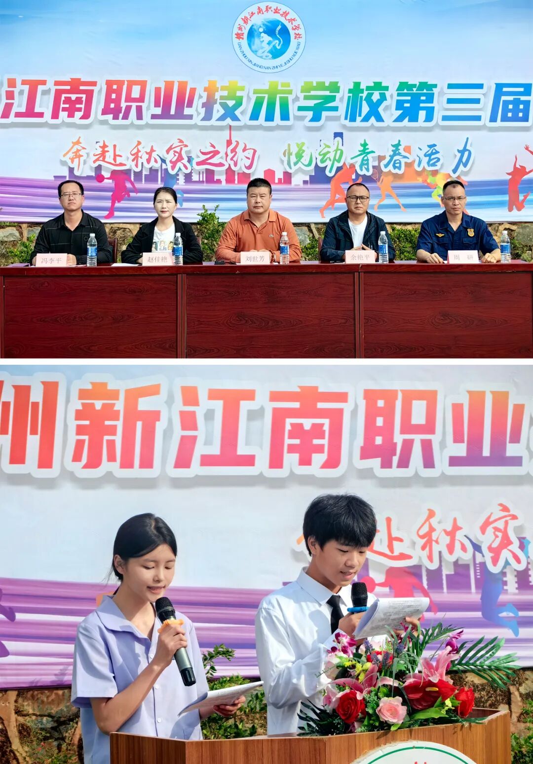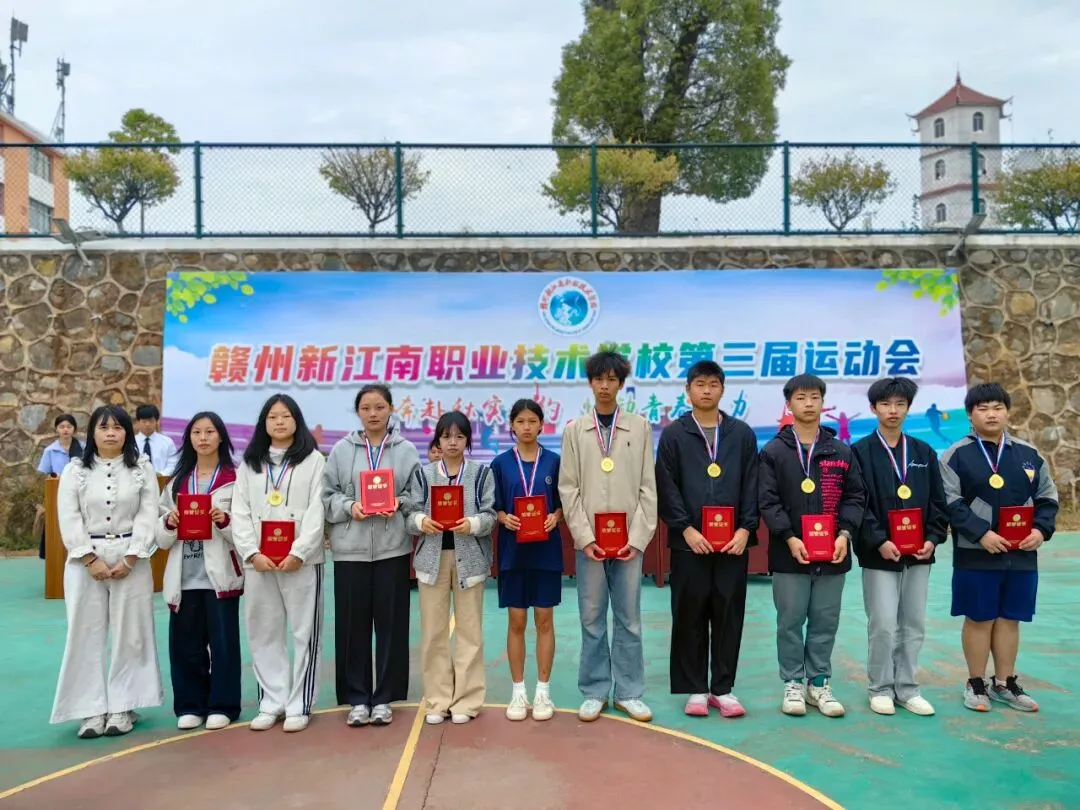 01 开幕式:创意无限,精彩纷呈 阳光洒在绿茵场上,旌旗飘扬,乐曲高奏。开幕式入场最前方的是国旗队、校旗队和彩旗队,护旗手们身姿挺拔如松,鲜艳的旗帜在晨光中猎猎飘扬,为运动会拉开了庄严的序幕。 随后裁判员队、教师方阵、各班级方阵紧随其后逐一亮相,或以创意道具、或以响亮口号展现青春活力。每一支队伍都带着独特的风采,成为校园里流动的风景线。 开幕式图集 在庄严的升旗仪式后,新江南职业技术学校副校长冯李平作开幕式讲话。随后,裁判员代表和学生代表分别宣誓发言,承诺将恪守体育精神,公正裁判,奋勇拼搏。 在热烈的掌声中,新江南教育集团、新江南职业技术学校校长刘世芳宣布赣州新江南职业技术学校第三届运动会正式开始! 02 赛场拼搏:挥洒汗水,展现风采 开幕式的余热未消,赛场便迅速沸腾起来,各项比赛陆续展开。跑道上,发令枪响,运动员如离弦之箭般冲向终点,他们的身影在阳光下划出一道道青春的弧线。 跃动青春热血 比赛现场热火朝天,跳远比赛中,起跳、腾空、落地,一系列动作干净利落,每一次努力都在挑战自我的极限。 绽放竞技荣光 “运球”项目趣味与竞技并存,队员们需要共同驾驭巨大的充气球向前行进,既要速度,更要默契配合,欢声笑语洒满赛场。 趣味与竞技并存 “绑腿跑”则别具一格,参赛者们套脚绳,在往返接力中笨拙又奋力地奔跑,独特的姿态惹得全场笑声不断。有的队伍配合默契,一路领先;有的队伍虽跌跌撞撞,却始终洋溢着开心的笑容。这些趣味项目不仅缓解了比赛的紧张气氛,更让同学们在亲密无间的合作中增进了友谊。 欢声笑语洒满赛场 同学们的竞技比拼彻底点燃全场。跑步、跳远、跳绳、踢毽子、引体向上、投壶、定点投篮、乒乓球、羽毛球等等,激烈的比拼点燃了现场的激情,展现出学生们的精神风貌与团队合作精神。 青春不言败 运动无止境 青春的弧线 老师们也积极参与到比赛中,共享运动乐趣。师生同乐的温馨场面,成为运动会又一道靓丽的风景线。 精彩纷呈 03 圆满闭幕:荣誉时刻,梦想启航 经过两天的激烈角逐,运动会在颁奖典礼中落下帷幕。全场响起阵阵掌声,向优秀运动员们表示祝贺。 闭幕致词 在闭幕式上,新江南教育集团副董事长杨美红发表致辞,她感谢师生们的积极参与和辛勤付出,展现了团结、奋进的精神风貌。她强调,运动会不仅锻炼了身体,更增强了集体凝聚力,希望大家继续发扬拼搏精神,在学习和生活中取得更大成绩。 胜利的喜悦 两天的时间转瞬即逝,校运会在欢声笑语中圆满落幕。赛场上,我们见证了速度与激情、坚持与拼搏、协作与友爱;赛场下,我们收获了成长与感动、友谊与力量。让同学们在运动中学会了坚持,在竞争中懂得了协作,在拼搏中收获了成长。让我们共同期待下一届校运会的精彩相遇,也愿体育精神永远在校园中传承发扬,激励着每一位学子奋勇向前,绽放属于自己的青春光彩!