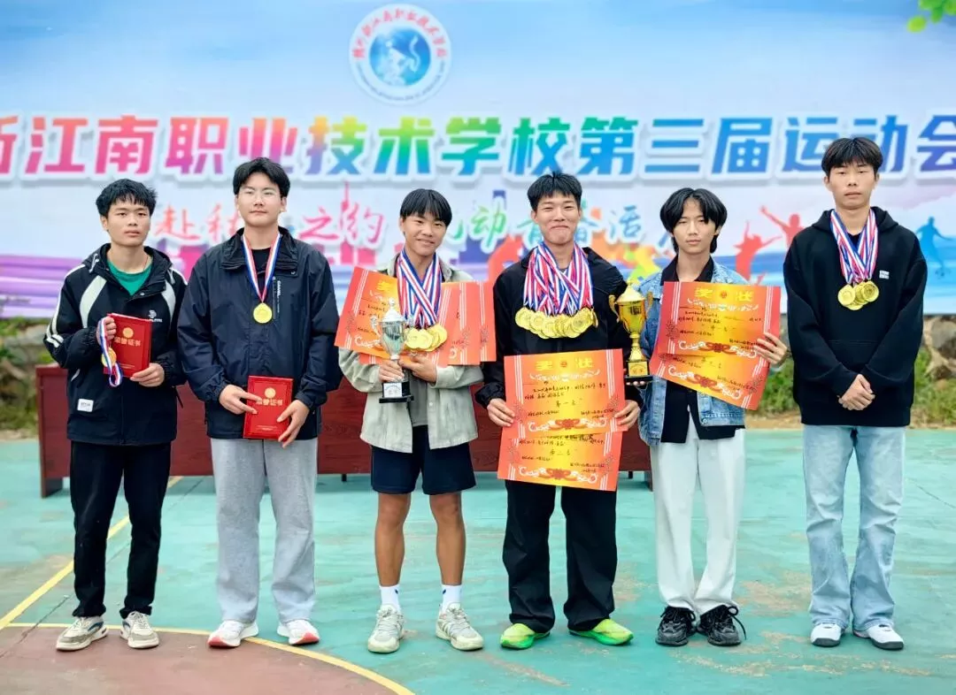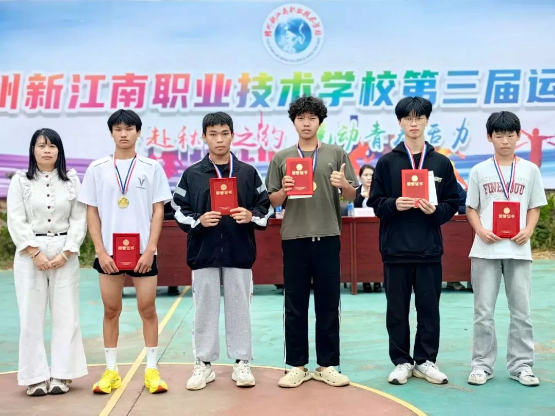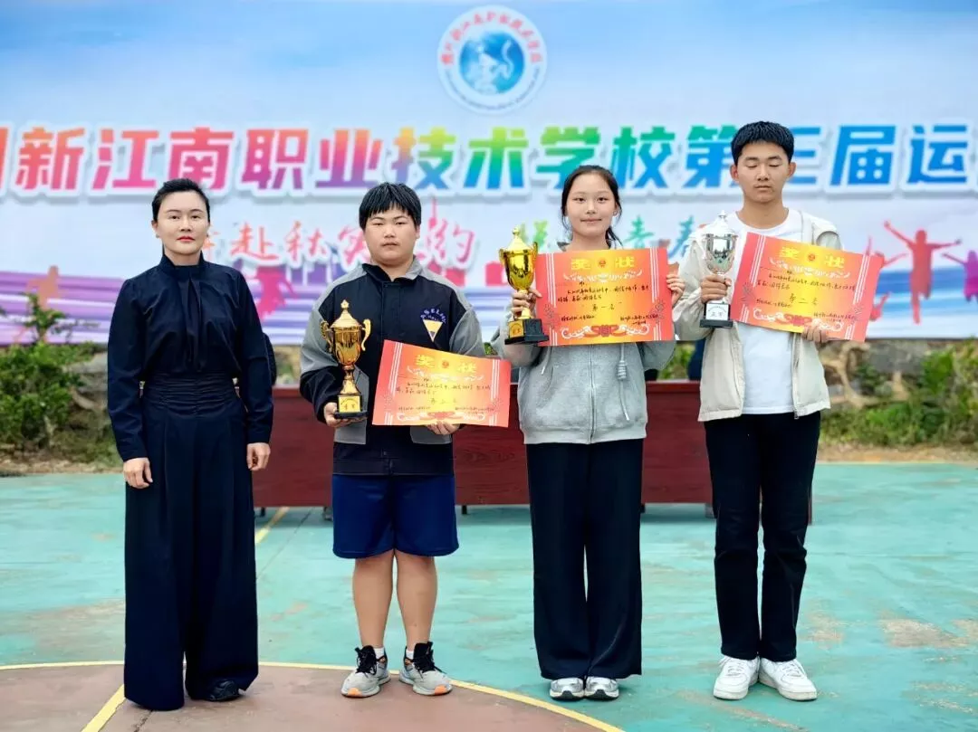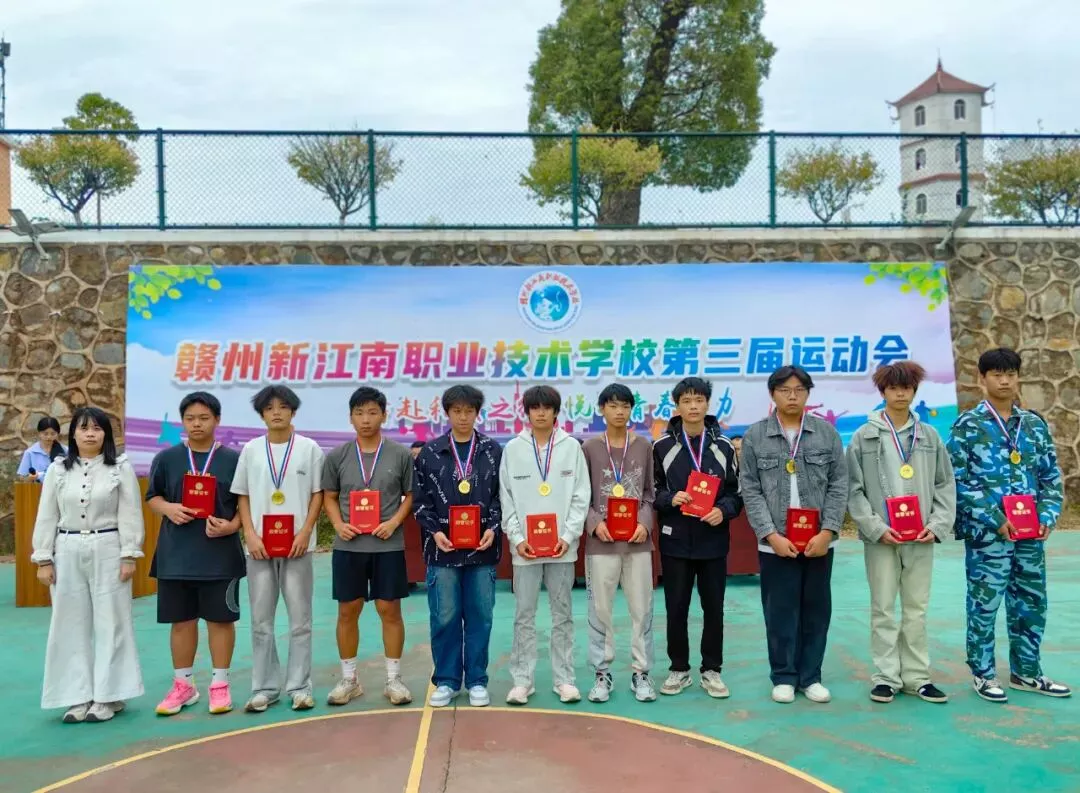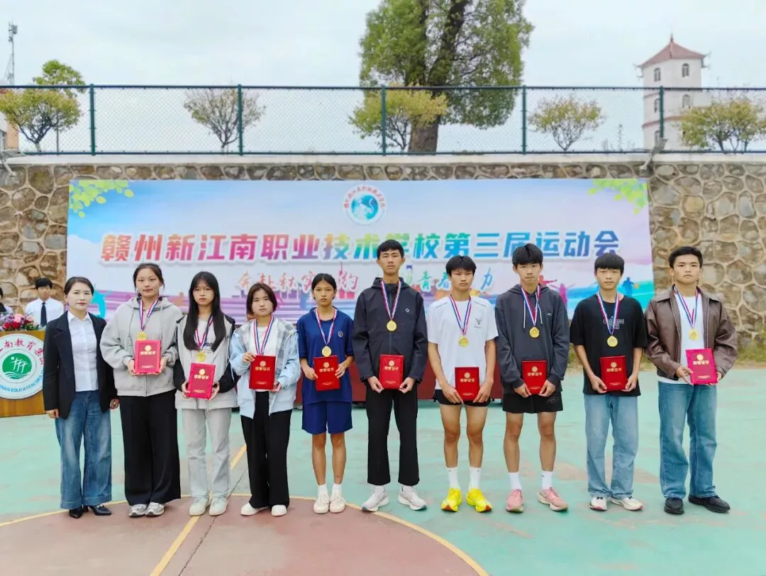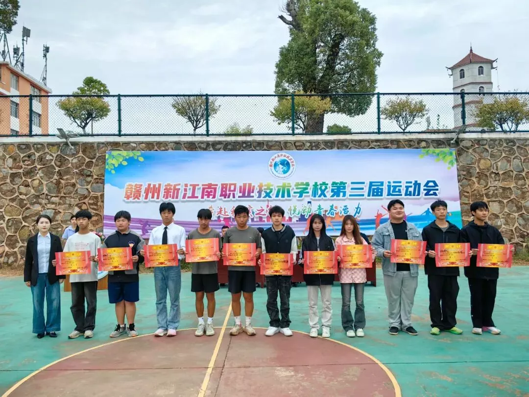 01 开幕式:创意无限,精彩纷呈 阳光洒在绿茵场上,旌旗飘扬,乐曲高奏。开幕式入场最前方的是国旗队、校旗队和彩旗队,护旗手们身姿挺拔如松,鲜艳的旗帜在晨光中猎猎飘扬,为运动会拉开了庄严的序幕。 随后裁判员队、教师方阵、各班级方阵紧随其后逐一亮相,或以创意道具、或以响亮口号展现青春活力。每一支队伍都带着独特的风采,成为校园里流动的风景线。 开幕式图集 在庄严的升旗仪式后,新江南职业技术学校副校长冯李平作开幕式讲话。随后,裁判员代表和学生代表分别宣誓发言,承诺将恪守体育精神,公正裁判,奋勇拼搏。 在热烈的掌声中,新江南教育集团、新江南职业技术学校校长刘世芳宣布赣州新江南职业技术学校第三届运动会正式开始! 02 赛场拼搏:挥洒汗水,展现风采 开幕式的余热未消,赛场便迅速沸腾起来,各项比赛陆续展开。跑道上,发令枪响,运动员如离弦之箭般冲向终点,他们的身影在阳光下划出一道道青春的弧线。 跃动青春热血 比赛现场热火朝天,跳远比赛中,起跳、腾空、落地,一系列动作干净利落,每一次努力都在挑战自我的极限。 绽放竞技荣光 “运球”项目趣味与竞技并存,队员们需要共同驾驭巨大的充气球向前行进,既要速度,更要默契配合,欢声笑语洒满赛场。 趣味与竞技并存 “绑腿跑”则别具一格,参赛者们套脚绳,在往返接力中笨拙又奋力地奔跑,独特的姿态惹得全场笑声不断。有的队伍配合默契,一路领先;有的队伍虽跌跌撞撞,却始终洋溢着开心的笑容。这些趣味项目不仅缓解了比赛的紧张气氛,更让同学们在亲密无间的合作中增进了友谊。 欢声笑语洒满赛场 同学们的竞技比拼彻底点燃全场。跑步、跳远、跳绳、踢毽子、引体向上、投壶、定点投篮、乒乓球、羽毛球等等,激烈的比拼点燃了现场的激情,展现出学生们的精神风貌与团队合作精神。 青春不言败 运动无止境 青春的弧线 老师们也积极参与到比赛中,共享运动乐趣。师生同乐的温馨场面,成为运动会又一道靓丽的风景线。 精彩纷呈 03 圆满闭幕:荣誉时刻,梦想启航 经过两天的激烈角逐,运动会在颁奖典礼中落下帷幕。全场响起阵阵掌声,向优秀运动员们表示祝贺。 闭幕致词 在闭幕式上,新江南教育集团副董事长杨美红发表致辞,她感谢师生们的积极参与和辛勤付出,展现了团结、奋进的精神风貌。她强调,运动会不仅锻炼了身体,更增强了集体凝聚力,希望大家继续发扬拼搏精神,在学习和生活中取得更大成绩。 胜利的喜悦 两天的时间转瞬即逝,校运会在欢声笑语中圆满落幕。赛场上,我们见证了速度与激情、坚持与拼搏、协作与友爱;赛场下,我们收获了成长与感动、友谊与力量。让同学们在运动中学会了坚持,在竞争中懂得了协作,在拼搏中收获了成长。让我们共同期待下一届校运会的精彩相遇,也愿体育精神永远在校园中传承发扬,激励着每一位学子奋勇向前,绽放属于自己的青春光彩!